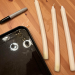 Take a look at these three easy steps below. All you need is thrifted candle stick holders, candles, a baking pan, hot water and a permanent marker. It’s so easy you’ll want to rinse and repeat. Plus, it cost less than $5!
