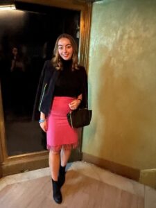 When it comes to New York Fashion Week (NYFW), I have a rule that at least one item of my outfit needs to be thrifted for each day I’m in attendance. This year, feeling a little out of practice, I stood in front of my closet thinking to myself, “What’s something interesting that I’ve found at Goodwill lately?” I landed on this amazing, wool-blend bubblegum pink BCBGMAXAZRIA skirt with fringe detailing on the bottom. (Style Alert: Fringe is going to be big this Spring.) I actually found this skirt on a very rewarding trip to a Goodwill store in Chicago last summer. This was the first opportunity I had to wear it.