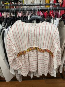 Even your everyday pencil skirt can be made more dramatic with fringe. I’m obsessed with little details, whether it’s fringe or another stylish embellishment. Small details have the ability to turn an average piece into a statement piece, so I love that fringe is back in style for this Spring and Summer! After NYFW, I took a trip to the Goodwill store in Midtown Manhattan. There, I found some fun pieces to style for warmer weather with this trend. For instance, this awesome cotton and linen blend shirt from Italy comes with a fringe belt that reminds me of a pinata. I can bring that statement piece from the city to the shore!